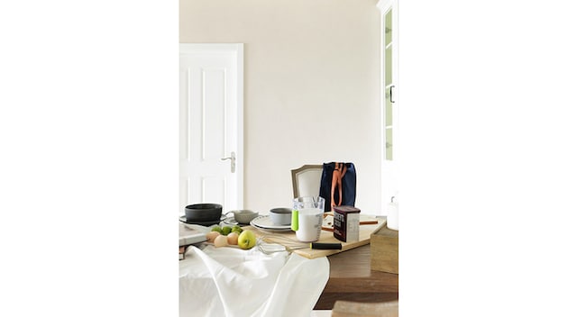 象牙色和暖沙色涂刷在立墙时,顶墙可以使用纯白色,令空间轮廓更加层次分明。