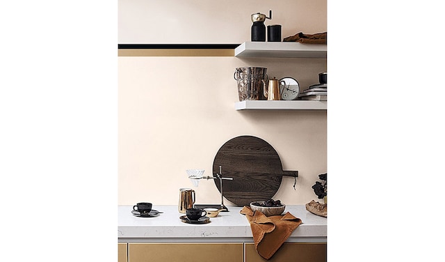 瓦灰色较深,作为背景墙能够和浅灰色或中灰色搭配,同时对于家居单品的色彩与材质包容度也非常大。