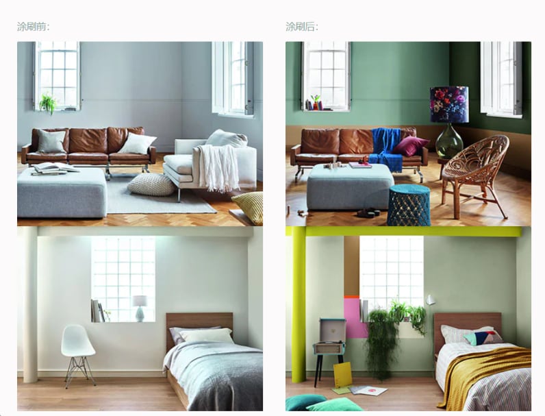 ※涂刷面积、涂刷环境、采光条件以及所用材料的不同均可能造成实际涂料颜色效果与本手册所示颜色效果的视觉差异,色号确认请以多乐士色卡为准。