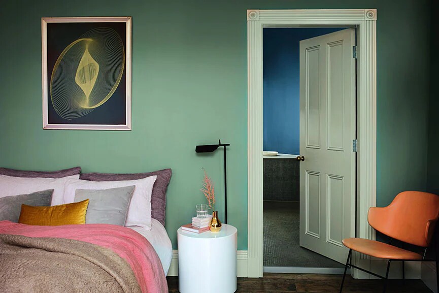 随着复古风潮的兴起,家居配色也开启了新的方式,曾经苍白的墙垣刷上带着复古感的怀旧浅褐,配上稍浅一些的杏仁白恰是展现老照片与老画像的绝佳背景墙,配上浓烈色调的单椅,兼具质感与时髦的气质。