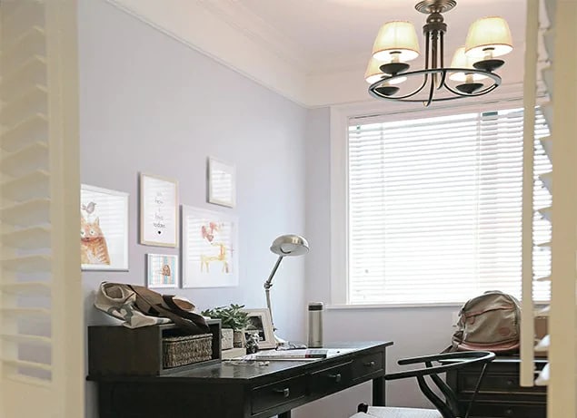 丁香花的花语是思念,如同对于老时光的回溯一般,涂刷了浅紫丁香色的空间里弥散着一股记忆的芬芳,悠然的浅紫色带着柔和的调子,与深色家具以及白色的百叶窗交融出宁静的氛围,让人在其中可以静静思考,过往与未来,在此刻交汇。
