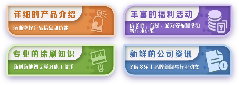 即刻注册加入“多乐士涂装之家”,立享专属会员礼遇。完善的会员成长体系,丰富的福利活动,详细的产品介绍,有趣的游戏中心,期待您的探索。快来看看如何加入吧!