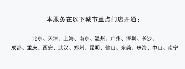 - 可在多乐士小程序中查询提供上门服务的城市及区域范围