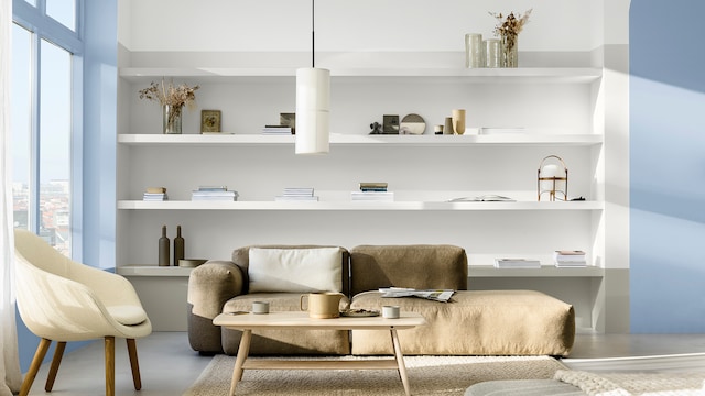 下载快速且免费的多乐士焕色大师应用程序,看一看晴空蓝如何改变您的家居空间。